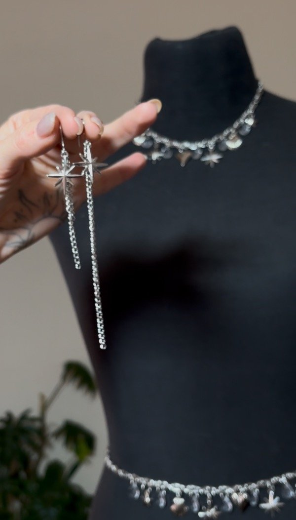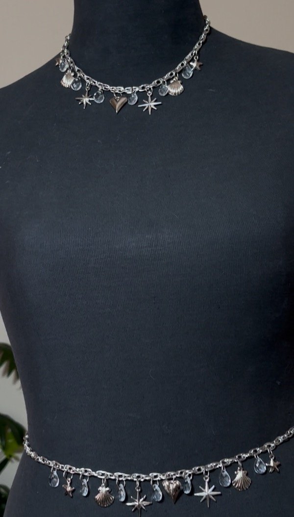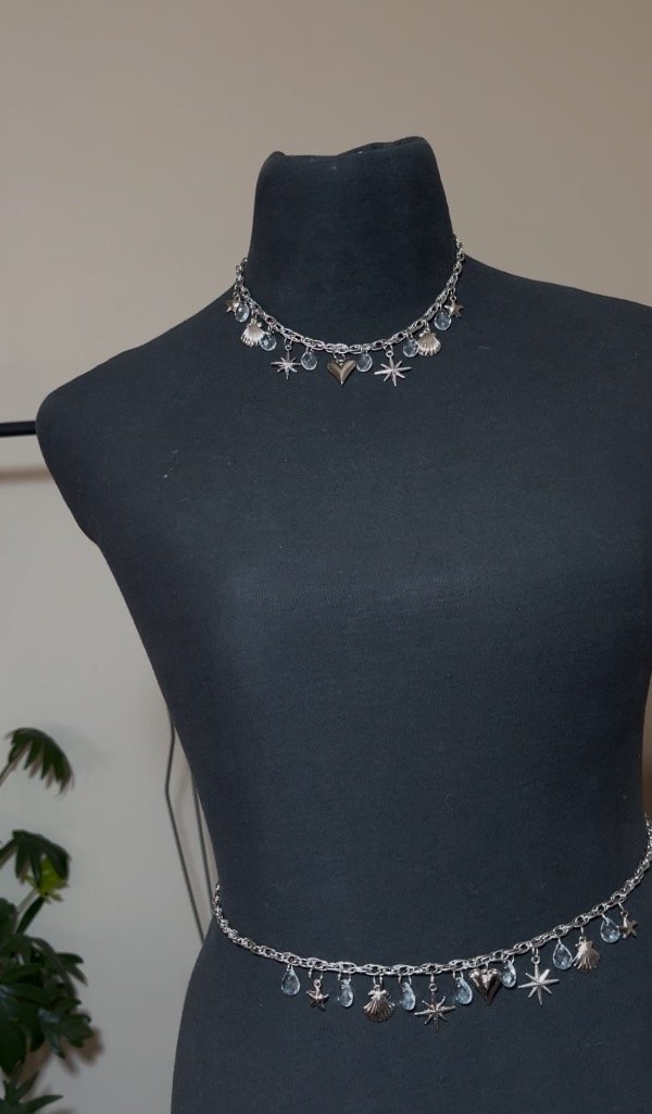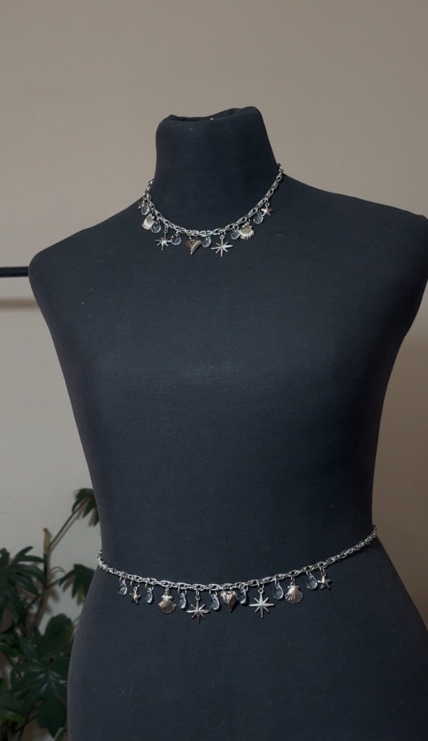 En éste set viene la belly chain + el choker + los aros