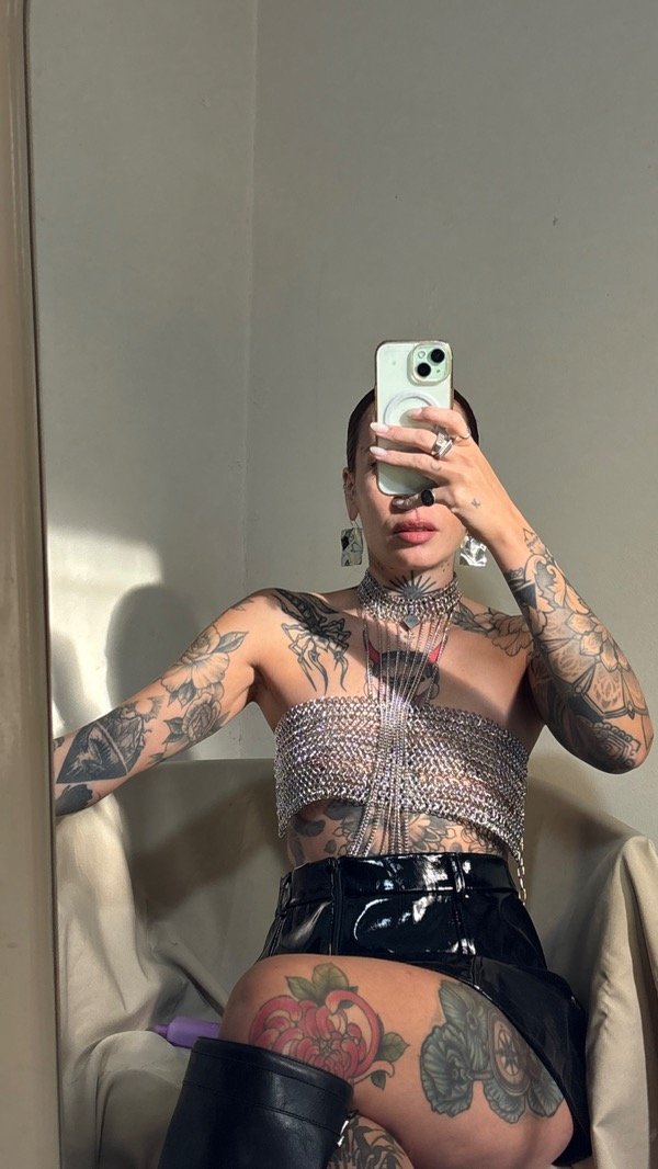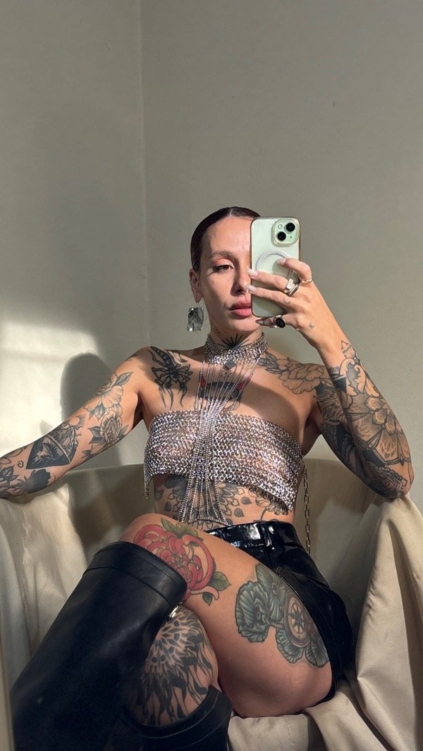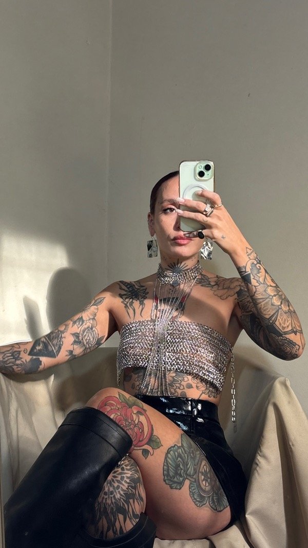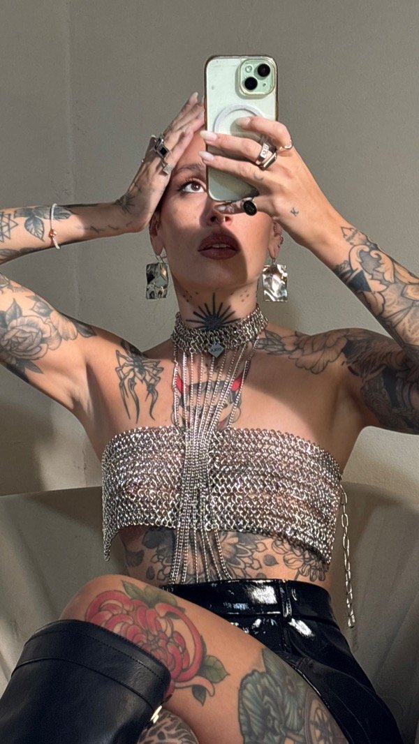 El top viene con dos cadenas que se enganchan a la gargantilla del bodychain para más seguridad.